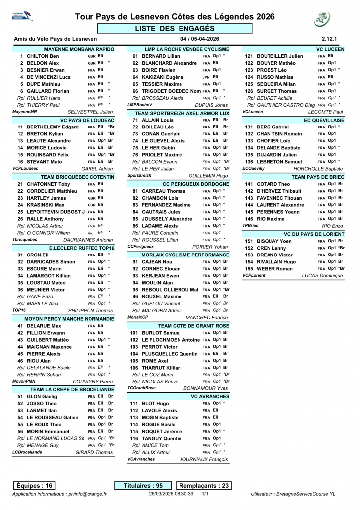 ➡️ Liste des engagés